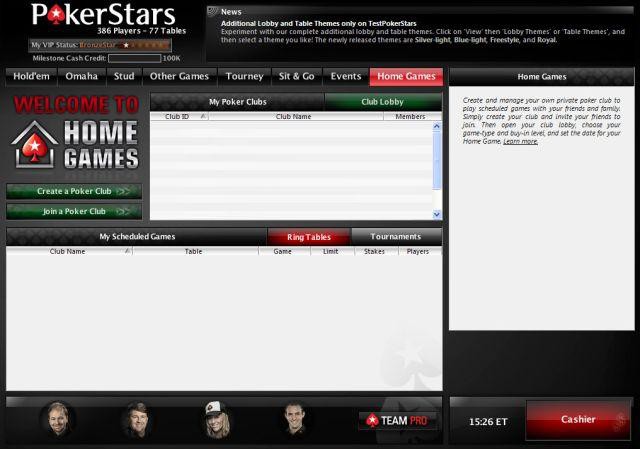 Aplikacija Home Games je na tržišču novost in zato postavlja nov standard v igranju pokra. Glavna prednost Home Games je v tem, da lahko igralci sami oblikujejo in upravljajo zasebne poker klube, v katerih lahko igrajo različne vrste pokra s tistimi, ki jih v ta klub povabijo. Kot upravniki spletnih poker klubov lahko izberejo ime kluba, obliko poker igre, turnirsko strukturo, višino vplačil in izplačil in še marsikaj. V klub lahko povabijo svoje prijatelje, sorodnike in znance, ne glede na to,