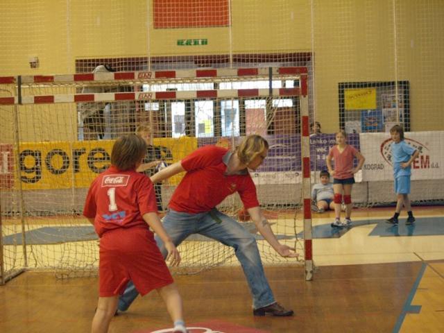 Otroci so se imeli priložnost zabavati na igrišču, pokazali so kaj se v rokometni šoli učijo. Pomerili so se dečki iz devetih osnovnih šol Velenja, Šoštanja, Šmarnega ob Paki in Polzele. Bilo je pravo malo tekmovanje, ki je bilo resnični posladek za oči in za popestritev jutranjih uric. Mladi nadebudneži so se veselili ob rokometni žogi in podenju po igrišču gor in dol. Njihovo rajanje pa je popestril še prihod Dedka Mraza in prihod fantov iz članske ekipe Gorenja. Mož s sivo brado je otrokom