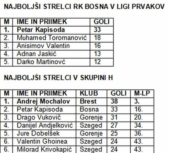 Gorenje se je že uvrstilo v drugi krog tekmovanja lige prvakov. V nedeljo gostujejo v Sarajevo, kamor gredo takorekoč na nek način na popravni izpit iz državnega prvenstva. Trudi se bodo in dali vse od sebe, da bodo popravili svoj vtis, kljub temu, da so že drugem krogu in da so izpolnili svoj cilj.