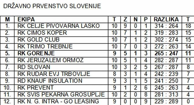 Rokometaši Gorenja so v zadnjem času igrali precej pomembnih tekem, ki so jim pobrale veliko energije, kar pa je na nek način tudi razlog za poraz. Na vprašanje o stanju ekipe trener ekipa Ivica Obrvan odgovarja, da so enega izmed ciljev že dosegli, in sicer uvrstitev v drugi krog lige prvakov. »Naš temeljni cilj je, da do konca dobro konkuriramo ekipama Kopra in Gold kluba za drugo mesto državnega prvenstva. »