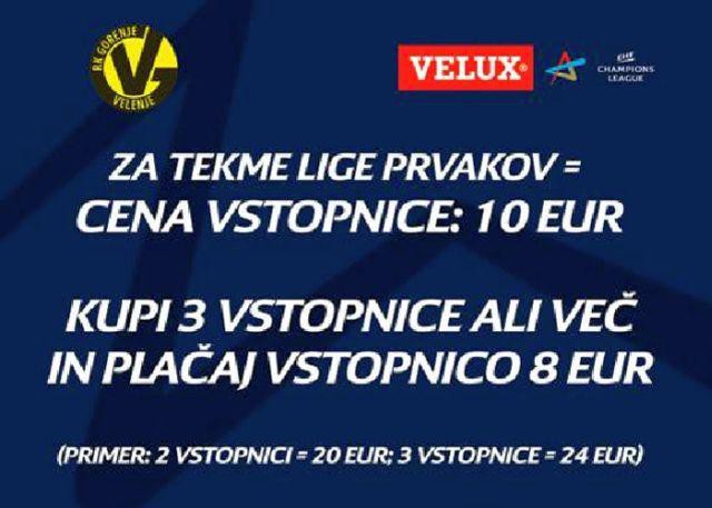 V Rokometnem klubu Gorenje Velenje smo si za prihajajočo tekmo Lige Prvakov postavili poseben cilj. In to je napolniti dvorano do vrha. Prav zaradi tega smo vam pripravili posebno ugodnost, za katero vam bo žal, če jo zamudite. V primeru, da za tekmo proti danskemu Aalbogu, ki je na sporedu naslednjo sredo, kupite tri vstopnice ali več, je cena posamezne vstopnice samo 8€ (redna cena vstopnice je 10€). Ponudba velja za vse domače tekme Lige Prvakov. Zakaj si spektakla ne bi ogledali ceneje oziroma s seboj pripeljete celotno družino ali prijatelje, ki bodo lahko z vami uživali v napetih in akcijsko nabitih tekmah.