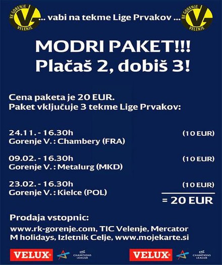 Ker so tekme lige prvakov prava paša za oči, smo se tokrat odločili, da vam poleg dobre igre in zanimivega obračuna, ponudimo tudi nekaj zabave. Že pred tekmo se bo v šotoru ob dvorani pričelo dogajati. Za vas bomo pripravili akcijske cene pijače in jedače. Happy hour v Max klubu s hostesami, Golaž, kuhanček, poslikava obraza in še ostale dobrote, s katerimi si boste krajšali minute pred tekmo. Po tekmi pa sledi žur z rokometaši velenjskega Gorenja. Vabimo vas, da se nam pridružite. Skupaj