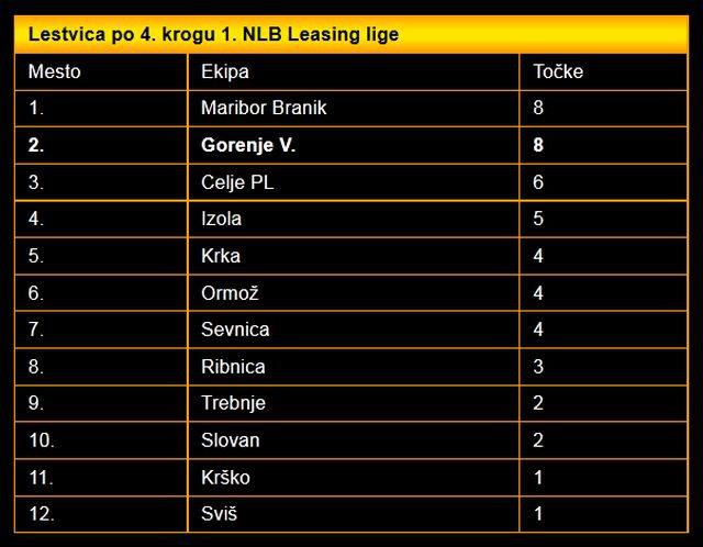 Na tretjem mestu so s šestimi točkami Celjani, pet pa jih ima ekipa Izole. Za Izolo se je znašla Krka, nato si sledijo še Ormož, Sevnica, Ribnica, Trebnje, Slovan in na zadnjih dveh mestih sta Krško in Sviš, ki imata vsak po eno točko.