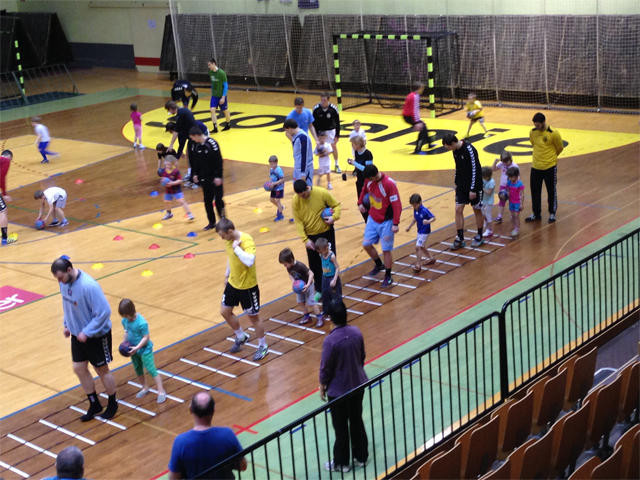 Igralci in otroki niso imeli težav z navezovanjem medsebojnih stikov. Brez zadržkov so se mali nadobudneži spustili v »boj« z velikani in pri tem pokazali pravi karakter. Kondicijski trener Morten Seier je, poleg rokometnih prvin, za bodoče zvezde pripravil dva različna poligona. Na obeh so bile v prednosti motorične sposobnosti, katere pa so otroki v paru z igralci opravili z odliko.