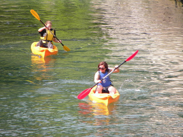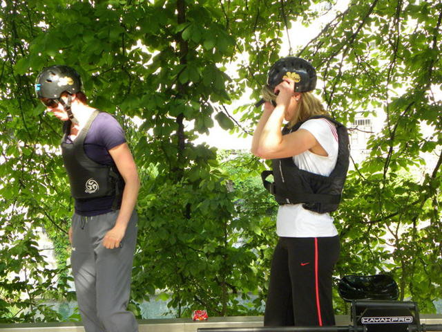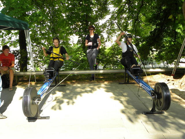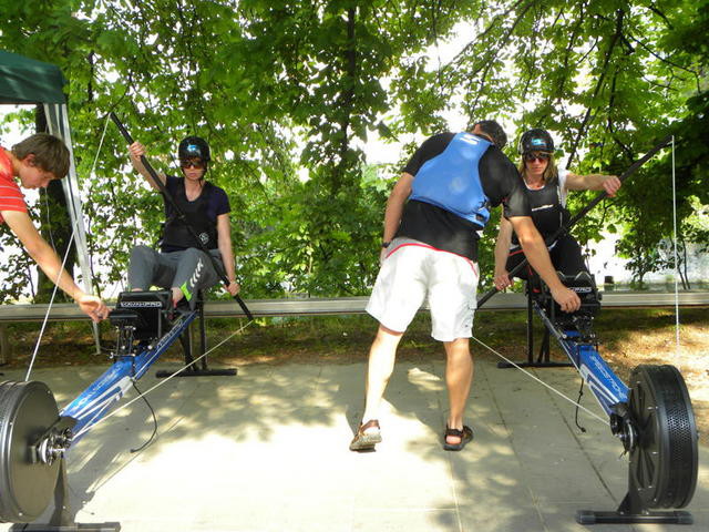 V kajakih in kanujih so dekleta veslala od Livade do Zmajskega mostu in se nekaj časa pomudila tudi v središču mesta, kjer so se z obiskovalci pomerila na ergometrih. V duhu akcije ozaveščanja o varnosti pri športih na vodi, so Krimovke tekmovale na ergometrih v plavalnem jopiču in čeladi ter tako opozarjale na primerno opremljenost, ki jo vodni športi zahtevajo.