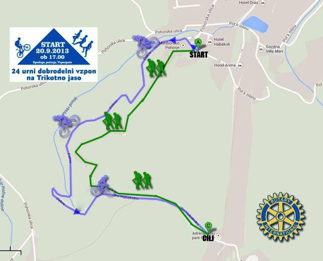 Začetek dobrodelne prireditve bo v petek, 20. septembra 2013, ob 17. uri pri spodnji postaji Vzpenjače. Prireditev se bo zaključila v soboto, 21. septembra 2013, ob 17. uri na Trikotni jasi. Cilj vsakega udeleženca bo, da bo po svojih zmožnostih, peš ali s kolesom, čim večkrat premagal razdaljo od starta do cilja. Z udeležbo bo vsak udeleženec s startnino, ki bo znašala 10 EUR prispeval v dobrodelni fond, v zameno pa bo prejel topel obrok ter simbolično nagrado.