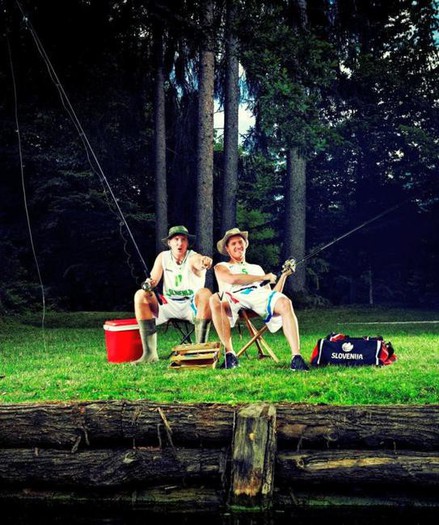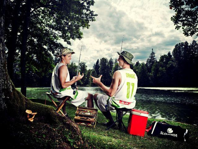 Nova »zen« relaksacijska tehnika? Niti ne, šlo je za snemanje oglasa za podjetje SPAR, ki kot ponosni sponzor dogodka v avgustu prireja veliko nagradno igro, v kateri bodo navijači lahko ujeli kar 1000 vstopnic za EuroBasket 2013. Dragić in Lakovič sta dan ribolova okronala z veličastnim ulovom grdobine in nam iskreno priznala, da se kot riba v vodi počutita le na parketu pod košem. Ribice bosta tako v prihodnje raje lovila kar na trgovinskih policah.