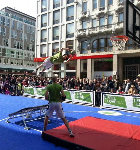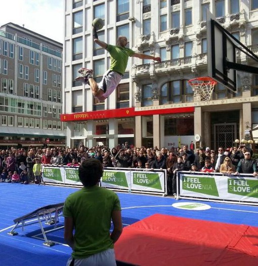 V nedeljo se je dogajanje preselilo v središče Milana, kjer je bilo le streljaj od glavnega trga Duomo postavljeno košarkarsko igrišče, na katerem so se lahko v različnih igrah preizkušali mimoidoči, za pravi spektakel in navdušenje med občinstvom pa je poskrbela akrobatska skupina Dunking Devils. Pri projektu je sodeloval tudi Urad vlade za komuniciranje, z zagotavljanjem pojavnosti znamke I Feel Slovenia na košarkarskem igrišču.