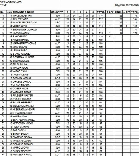 Zmagovalec GP Slovenija 2006 je z z rezultatom 138 (116) tarč, ki šteje tudi v mednarodnem okolju, postal član Slovenske A reprezentance Boštjan Maček iz Murske Sobote. Drugo mesto je s 135 (112) tarčami dosegel Franz Tichy iz Avstrije, tretje pa Kristjan Kancelar iz Hrvaške s 132 (115).