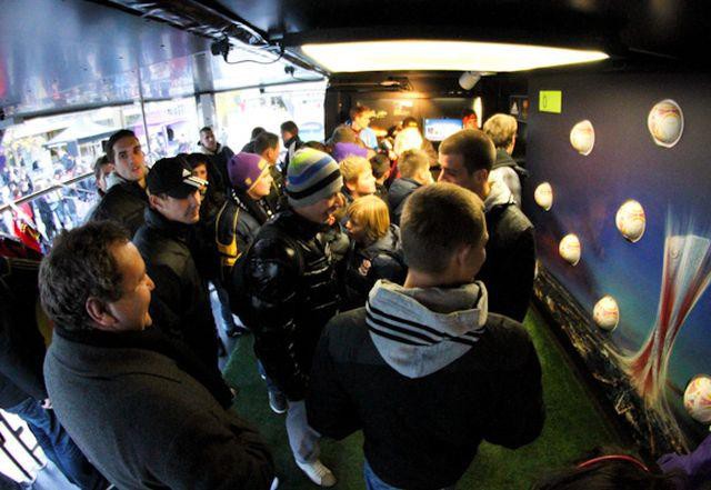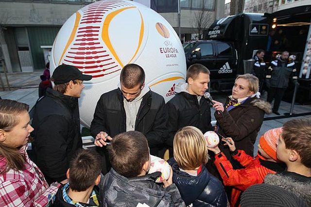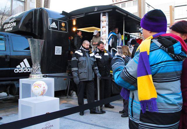 Z predvčerajšnjim spopadom NK Maribor : Lazio se je zaključilo dvodnevno gostovanje posebnega adidasovega tovornjaka UEFA Lige Europa. V sredo, ki je minila v znamenju predpriprav na veliko tekmo, je tovornjak na Trgu Leona Štuklja na ogled postavil edinstven pokal lige, posebno vzdušje pa je s svojo energično glasbo ustvarila DJ-ka Lady M.