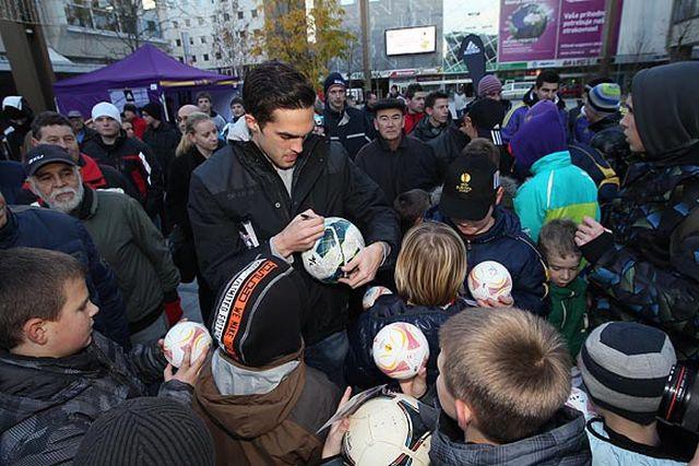 Navijači in drugi nogometni navdušenci so to izjemno priložnost izkoristili za občudovanje in fotografiranje s pokalom, ki bo 15. maja romal v roke najboljšega kluba. Obiskovalci so v notranjosti tovornjaka razkrivali skrivnosti prvenstva in se pomerili na adidasovem spretnostnem poligonu, kjer so nekateri srečneži osvojili VIP vstopnice za četrtkovo tekmo. Vrhunec dneva pa je bil zagotovo obisk nogometašev NK Maribor. Rajko Rep, Mitja Viler, Nejc Mevlja in Martin Milec so z deljenjem avtogramov in fotografiranjem z navijači na trgu povzročili pravo evforijo.