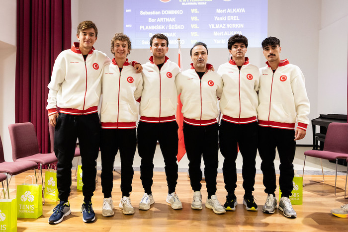 Za Turčijo bodo nastopili Mert Alkaya (376. ATP), Yanki Erel (436. ATP), Ergi Kirkin (553. ATP), Karem Yilmaz (1640. ATP) in Kaan Isik Kosaner. Naj spomnimo, Slovenija je lani odigrala dva dvoboja. Februarja je v Velenju premagala Indonezijo, septembra pa v Ljubljani Urugvaj. Slovenija se je s Turčijo sicer pomerila trikrat. Prvič leta 1993, kar je bil tretji reprezentančni nastop v zgodovini slovenske ekipe. Dvoboj je potekal v Zambiji, Slovenija pa je slavila zmago s 3:0. Za zmago sta poskrbela Marko Por in Blaž Trupej, selektor je bil Aleš Filipčič. Drugič sta se reprezentanci srečali leta 2018, znova s srečnim koncem za Slovenijo. Po zaostanku z 1:2 sta zmagoviti točki za preobrat prispevala Aljaž Bedene in Nik Razboršek. Za Slovenijo sta nastopila še Tom Kočevar Dešman in Mike Urbanija, ekipo pa je vodil Miha Mlakar. Zadnji dvoboj je bil februarja 2023, ko so bili s prepričljivih 4:0 boljši Turki. Slovensko reprezentanco so sestavljali Blaž Rola, Bor Artnak, Sebastian Dominko, Jan Kupčič in Matic Križnik, selektor pa je že bil Grega Žemlja.