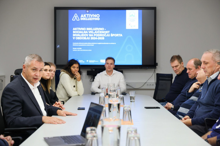 Ljubljana, 4. december 2025 - Dan po Svetovnem dnevu invalidov je na Ministrstvu za gospodarstvo, turizem in šport potekala predstavitev trenutnih aktivnosti projekta Aktivno inkluzivno. Predstavilo se je dvanajst regijskih koordinatorjev športa invalidov, ki so novo zaposleni sodelavci Zveze za šport invalidov Slovenije – Slovenskega paralimpijskega komiteja (Zveza ŠIS-SPK). Državni sekretar mag. Dejan Židan je poudaril: »Šport ima številne pozitivne učinke na zdravje, tako telesno kot duševno. Zato je še toliko bolj pomembno, da je dostopen tudi invalidom. Zdi se mi izredno pomembno, da država poskrbi za ranljive skupine, saj s tem pokaže svojo zrelost in skrb za vse državljane. Pogosto pa ni dovolj samo zagotoviti dostopnost infrastrukture, ampak so potrebne še dodatne prilagoditve in spodbude, ki omogočijo, da invalidi šport zares vključijo v svoja življenja. Vesel in ponosen sem, da smo pripravili program, ki dela prav to.«