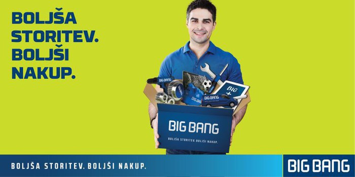 Paket storitev, od dostave in montaže pa do izobraževalnih tečajev in info portala, je Big Bang pospremil s prenovljeno komunikacijo in novim sloganom »BOLJŠA STORITEV. BOLJŠI NAKUP.«. S tem Big Bang utrjuje pozicijo h kupcem usmerjenega podjetja, ki sodobnemu potrošniku zagotavlja edinstvene dodane vrednosti. Z novo komunikacijo pa izpostavlja jasno vizijo, kakšno mora biti nakupovanje v sodobnem času: hitro, enostavno in zanesljivo.
