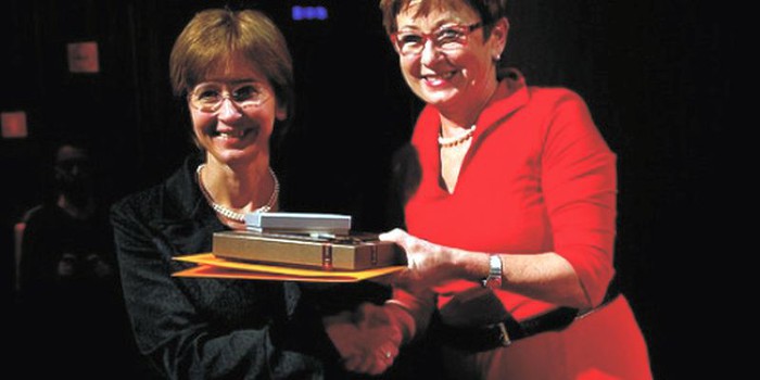 Obeležje za sodelovanje v projektu Botrstvo je v imenu Kolektorja prevzela Anica Uršič Vončina, izvršna direktorica za plan in analize (na fotografiji levo).