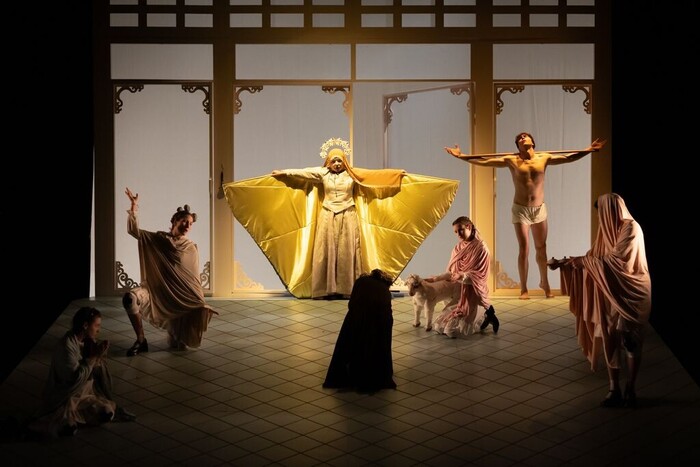 »Odločitev, da bo predstava brez besed oziroma brez klasičnega dramskega teksta, je bila sprejeta zelo zgodaj v procesu. Želeli smo uprizarjati Cankarja, ne da bi bili pri tem neposredno obremenjeni z njegovim besedilom. Njegova moč se namreč kaže predvsem v podobah, ki jih ustvarja, in v načinu, kako skozi njih razpira notranje svetove ter travme likov. Prav tako smo se odločili za zmanjšanje števila likov. Namesto štirinajst deklic, jih imamo pet, ob njih pa še lika Jezusa in Marije. S tem se vzpostavi zaprta skupnost, izoliran svet brez zunanjih vplivov in obiskov,« je povedal dramaturg Nik Žnidaršič in dodal: »Pomembno je poudariti, da gre pri »nemosti« predstave za zavesten uprizoritveni postopek. Temelji na materialnosti, na teksturah, občutjih, zvokih, in manj na besedni izmenjavi. Tak pristop se je izkazal kot zelo blizu tudi samemu bistvu deklištva, ki pogosto išče drugačne, bolj senzualne načine izražanja.«