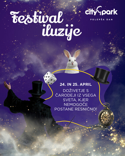 20. 4. 2026 - V našo največjo nakupovalno destinacijo prihaja skrivnostni svet čarovništva. Obiskovalci vseh generacij bodo na Festivalu iluzij ta petek in soboto lahko doživeli magijo v živo. V sklopu dogajanja bo potekal čarovniški sejem, interaktivne delavnice, raznolike odrske predstave in predstavitve bližnjih (»close up«) trikov, ki navdušujejo s svojo neposrednostjo in spretnostjo.