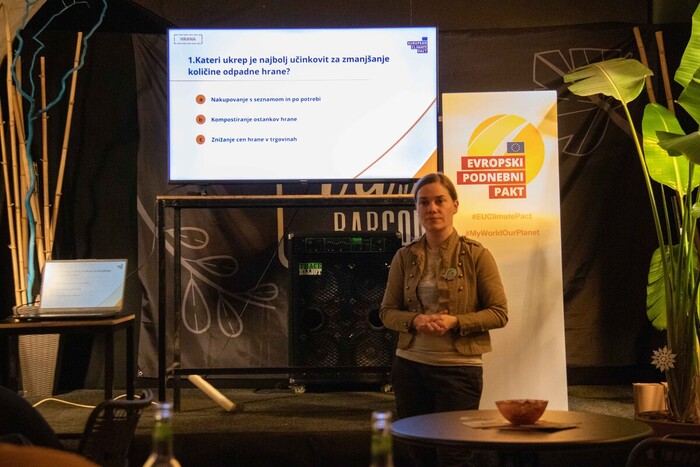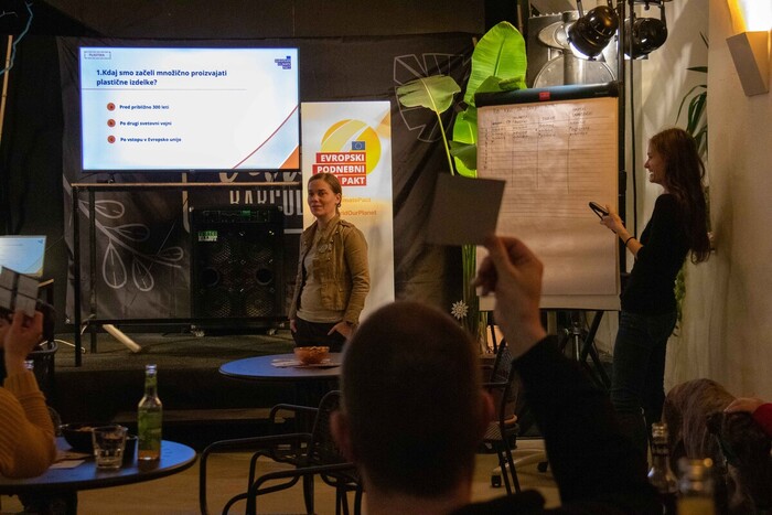 Mariborska družabna scena se je za en večer obarvala zeleno. V prijetnem in sproščenem ambientu bara Coda je več ekip, sestavljenih iz študentov, otrok, lokalnih prebivalcev in drugih okoljskih navdušencev, preizkusilo svoje znanje o podnebnih temah, ki oblikujejo prihodnost našega planeta. Pub kviz je vodila Katja Sreš, ambasadorka Evropskega podnebnega pakta v Sloveniji, ki je udeležence popeljala skozi deset tematskih sklopov: Podnebje, Energija, Zakonodaja, Odpadki, Plastika, Hrana,