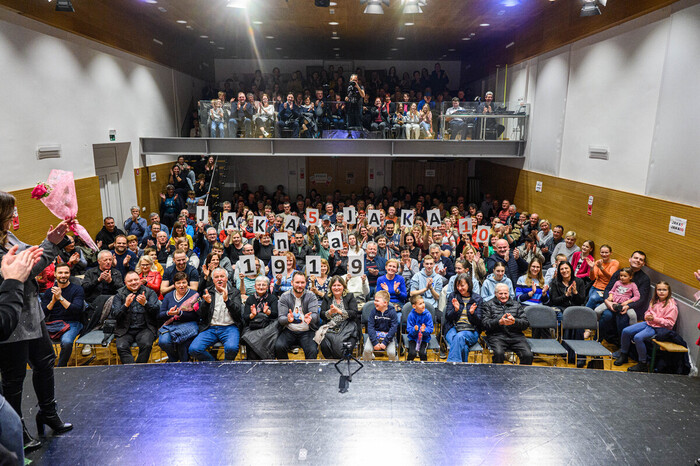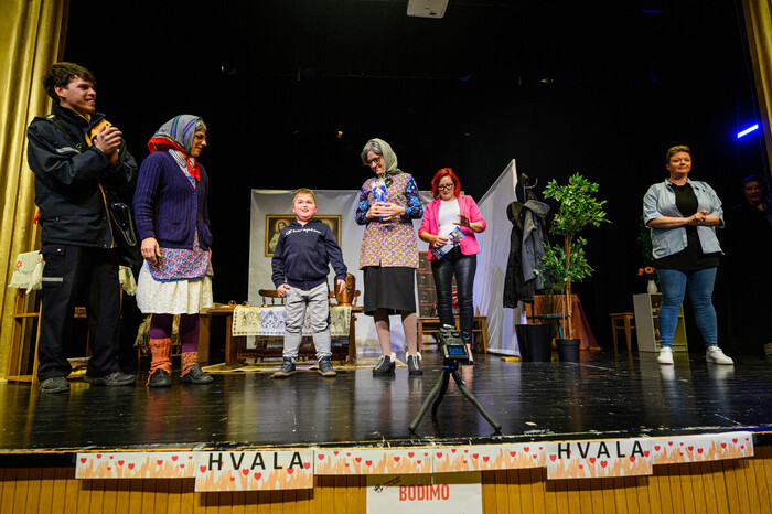 Ivančna Gorica, 2. marec 2026 – Po treh nabito polnih dvoranah v domačem Zagradcu ter gostovanjih v Ambrusu, na Dvoru, Krki, Stični in Šentvidu pri Stični je gledališka uspešnica Zagraška mama 2 sinoči znova do zadnjega kotička napolnila Dom kulture v Šentvidu pri Stični. Tokrat pa večer ni bil le v znamenju smeha in odlične igre, temveč tudi srčnosti in solidarnosti.