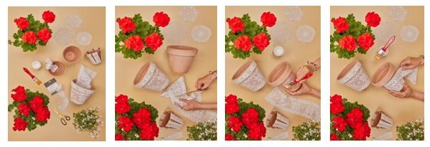 Pelargonije so osupljive rastline. Navadni glineni lončki njihove lepote preprosto ne poudarijo dovolj. Na srečo lahko to spremenite z le nekaj truda. Nostalgični čipkasti detajli dajejo tem predelanim sadilnikom očarljiv vintage videz. So zelo preprosti za izdelavo in lahko pelargonije spremenijo v fantastično dekoracijo in personalizirana cvetlična darila.