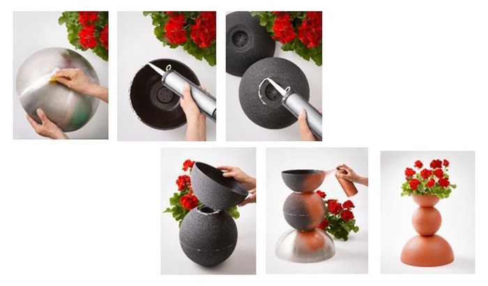 4. korak: Položite tretjo polkroglo posodo na vrh sferične strukture. To bo posoda, v katero boste kasneje posadili pelargonijo. Pustite, da se lepilo popolnoma strdi.