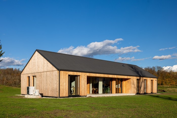 Pritlična hiša združuje klasično arhitekturno zasnovo z napredno tehnologijo trajnostne gradnje Lumar. Njena preprosta, simetrična oblika z dvokapno streho naklona 30° brez napuščev se harmonično vklaplja v okolje, hkrati pa omogoča sodobno odprto notranjo zasnovo. Svetla višina pritličja znaša 250 cm, dnevno-bivalni del pa je odprt do slemena, kar ustvarja zračen in prostoren ambient. S skupno neto površino 167 m² ponuja hiša popolno ravnotežje med funkcionalnostjo in udobjem. Z izbranimi