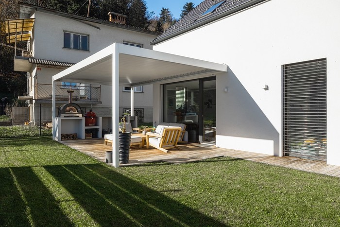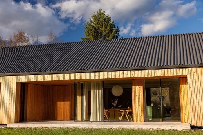 Voden ogled hiše individualne pritlične hiše Lumar – zasnovo in individualno prilagajanje so izvedli v Lumarjevem arhitekturnem biroju.