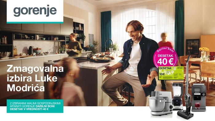 Privoščite si spretnega soigralca v kuhinji, s katerim bo priprava jedi hitrejša, rezultati pa vedno zanesljivi. Med malimi gospodinjskimi aparati Gorenje izstopajo odlični kandidati, ki jih z veseljem izbere tudi Luka Modrić. Vašo izbiro Gorenje tokrat nagradi s posebno ugodnostjo: ob nakupu izbranih malih aparatov vas pričaka darilo – 40 € v darilnih bonih Desetak kot dodatna spodbuda za še bolj brezskrbno in navdihujočo kuhinjsko izkušnjo.
