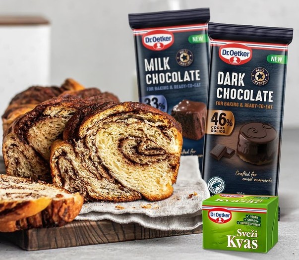 Poseben čar domači peki daje spoj svežega kvasa in kakovostne čokolade. Ta »power couple« že generacije navdušuje brbončice – bodisi v polnjenih krofih, čokoladnih buhtljih, briošu s koščki kakava ali toplem kruhu s stopljeno čokolado. Dr. Oetker v svoji ponudbi nudi mlečno in temno čokolado za kuhanje, ki se odlično povezujeta z mehkim testom ter ustvarjata uravnoteženo kombinacijo sladkosti, arome in teksture.