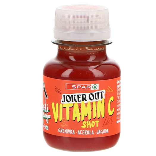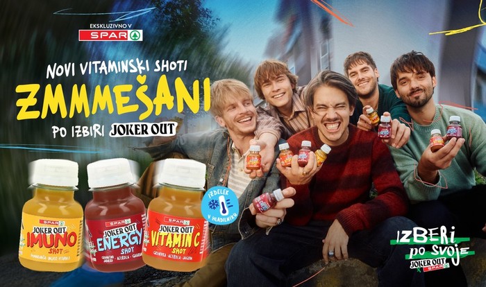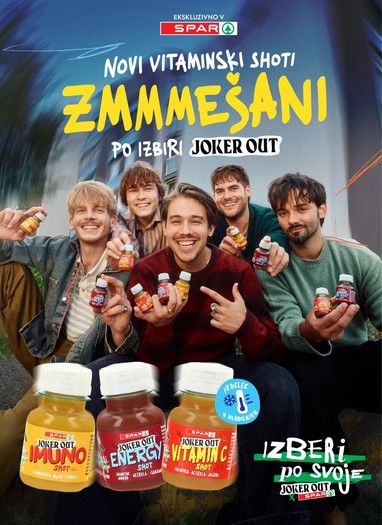Po uspešnem lansiranju vitaminskih napitkov z okusom so v Sparu v sodelovanju z mladimi glasbeniki skupine JOKER OUT predstavili novo linijo izdelkov in sicer Joker Out vitaminske shote. Na voljo so trije okusi: Imuno shot s svojimi sestavinami (pomaranča, ingver, vitamin D) podpira delovanje imunskega sistema, Energy shot pomaga zmanjševati utrujenost in izčrpanost (grantano jabolko, acerola, guarana), Vitamin C shot (grenivka, acerola, jagoda) pa prispeva k dobremu počutju. Vitaminski shoti, ki jih najdete na oddelku Hitroteke in jih je potrebno hraniti v hladilniku, so polni koristnih snovi, pakirani pa so v plastenkah iz reciklirane in rastlinske plastike.