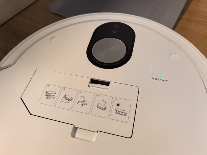 sprotno higieno. Robot se tudi med pomivanjem redno vrača na postajo – približno vsakih 20 m² – kjer krpe izpere in ožame, preden nadaljuje. Tako ne širi umazanije po stanovanju, kar je pogosta težava cenejših robotov. Ko konča, v postaji krpe temeljito opere in jih suši približno dve uri, hrup je minimalen.