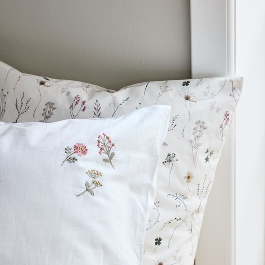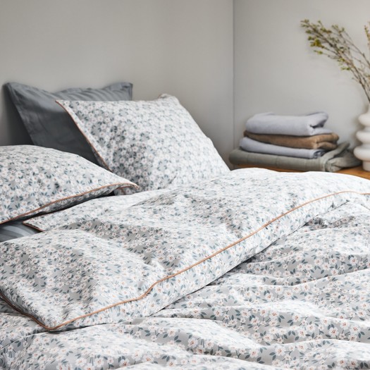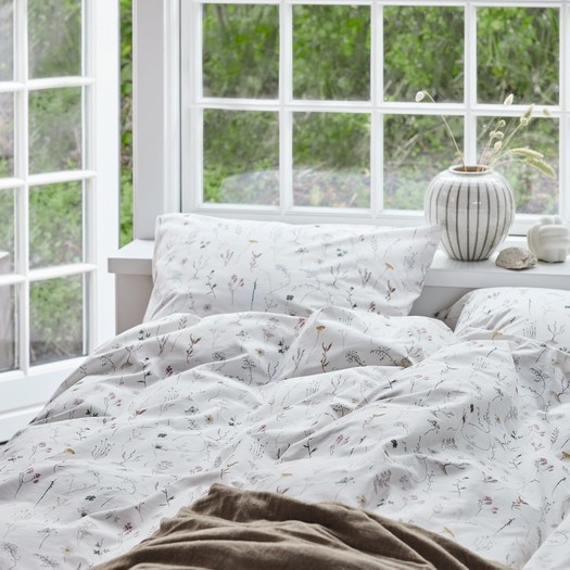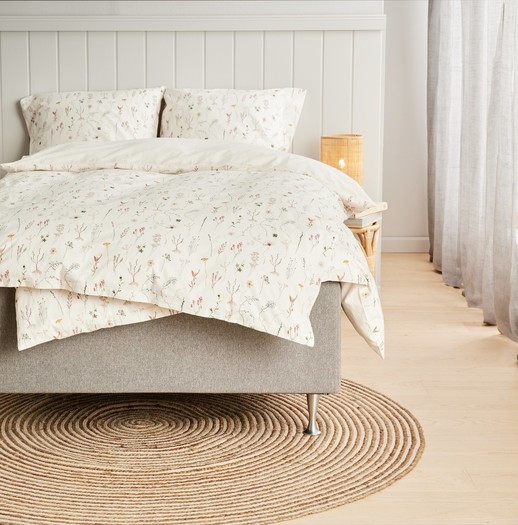 JYSK se je zato to sezono osredotočil na majhne podrobnosti, ki imajo velik vpliv – kot so recimo trajnostni materiali in različni vzorci, tkanja ali obrobe. Vsak komplet nosi s seboj kanček edinstvenosti in verjamemo, da lahko vsak najde popolno posteljnino zase, za toplejše dni, ki so pred nami. Pravi primer poletne romantike je posteljnina SUSSI iz 100% bombaža, s cvetjem, ki se zdi kot poklon naravi. Za popolno romantično vzdušje pa priporočamo kombinacijo s prevleko za vzglavnik MAJ, ki je izvezena s cvetjem. Ta posteljnina izžareva nostalgijo in obuja lepe spomine na posteljnino naših babic.