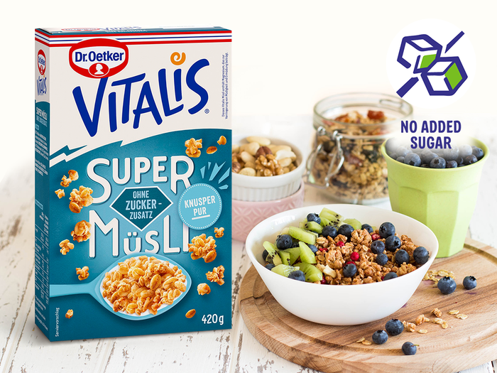 Da bi sledil ciljem listine in trendom zdrave prehrane, je Dr. Oetker zmanjšal povprečno vsebnost sladkorja v svojih izdelkih. Z našimi Vitalis Super muesliji brez dodanega sladkorja izpolnjujemo željo naših potrošnikov za prehrano z zmanjšanim vnosom sladkorja. Vsebnost sladkorja v teh mueslijih je 1,8 odstotka in samo od sestavin, ki vsebujejo naravni sladkor. Na področju izdelkov za pripravo ozimnice med drugim ponujajo tudi Dr. Oetker želirni sladkor s sladilom stevia, ki potrošnikom