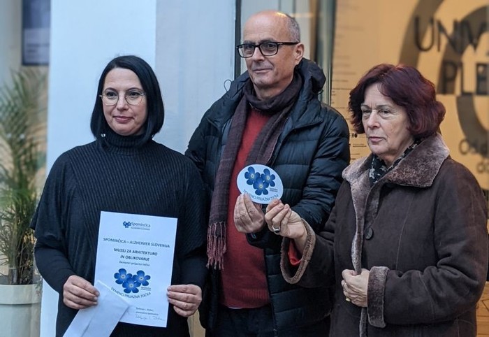Na fotografiji: dr. Bogo Zupančič, direktor MAO, Štefanija L. Zlobec, predsednica Spominčice - Alzheimer Slovenija in dr. Maja Šuštaršič, muzejska svetovalka