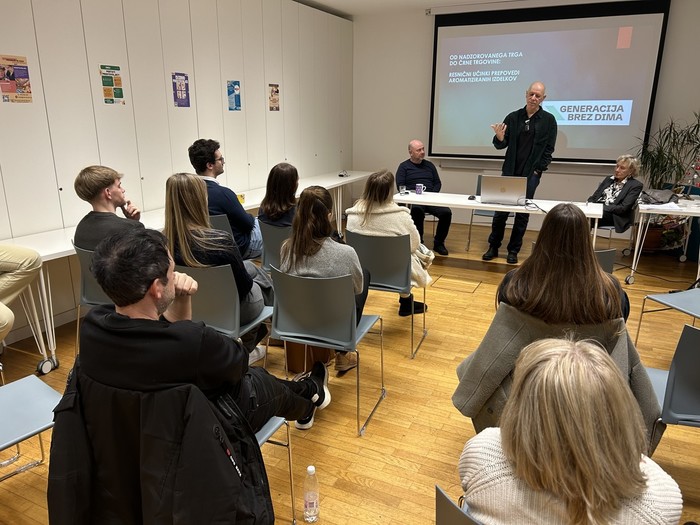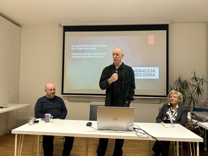 10. 12. 2025 - Včeraj, 9. decembra, je v prostorih Kolektiva 99 potekala razprava o posledicah prepovedi aromatiziranih tobačnih izdelkov v Sloveniji. Razprava je sovpadla z objavo rezultatov ankete, ki jo je društvo Generacija brez dima izvedlo novembra med 234 uporabniki nikotinskih izdelkov. Ugotovitve kažejo, da je prepoved arom povzročila obsežne negativne posledice, ki jih javnost do zdaj ni poznala. Na okrogli mizi so svoje poglede in stališča predstavili Slaven Kalebić . predsednik društva Generacija brez dima, prof. dr. Tamara Lah Turnšek – slovenska biokemičarka in nekdanja direktorica Nacionalnega inštituta za biologijo ter Sašo Stojanovič Lenčič iz društva Kolektiv 99