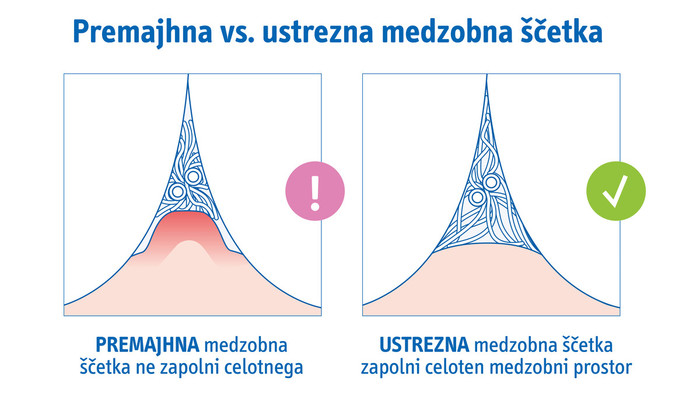 Vsi sodelujoči strokovnjaki za ustno zdravje v okviru akcije Zdrave dlesni pacientom izmerijo medzobne prostore, jih naučijo rokovati z medzobnimi ščetkami in jim razložijo, na kaj morajo pri izbiri in uporabi biti pozorni. Pomembno je, da se ne ustrašimo krvavenja, ki je prisotno predvsem na začetku uporabe medzobnih ščetk. Krvavitev iz dlesni je namreč znak vnetja, to pa je posledica slabe ustne higiene. Samo z dobro higieno lahko preprečimo vnetje dlesni, torej odpravimo krvavenje. Dobro si je še zapomniti, da ko so dlesni vnete, so tudi otekle in nabrekle. Ko jih z redno in popolno ustno higieno pozdravimo, uplahnejo, zato so prostori med zobmi večji. Po redni uporabi medzobne ščetke, ko smo vnetje dlesni odpravili, moramo zato seči po večji medzobni ščetki. Spodbudno je, da se pri pacientih, pri katerih so glavna težava občutljive in krvaveče dlesni, svetovanje in prikaz redne uporabe medzobnih ščetk ustrezne velikosti izkaže s pozitivnimi rezultati, to pomeni v izboljšanju ustnega zdravja,« pojasnjuje doktorica dentalne medicine Tea Šket Strajnšak.